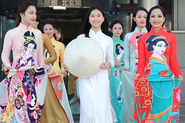 Hình ảnh thiết kế áo dài mới của Nhật Dũng tại Osaka, Nhật